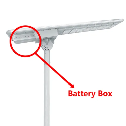 The integrated battery box design improves heat dissipation and protects internal components from moisture and dust, making the outdoor solar street light reliable for highways, parking lots, industrial areas, and remote off-grid installations.